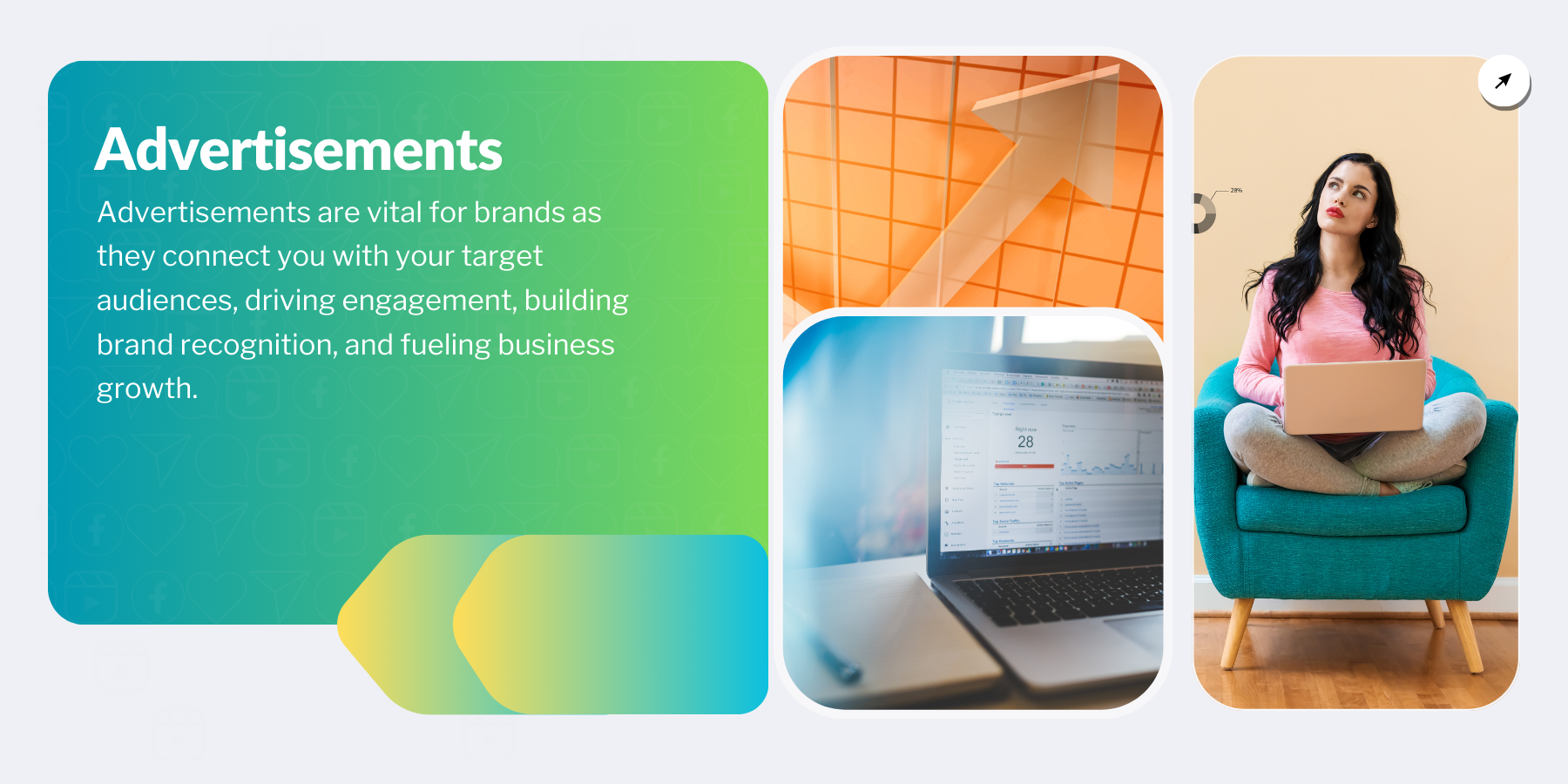 We harness the power of innovative social media and advertising strategies to propel your brand's growth and maximize your return on investment.